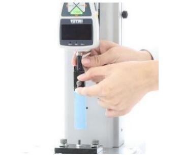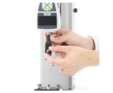 ยึดด้ามจับเข้ากับเพลาวัด | เปิดหัวจับด้วยสกรู | ขันสกรูให้แน่นเพื่อยึดชิ้นงานทอสอบ |