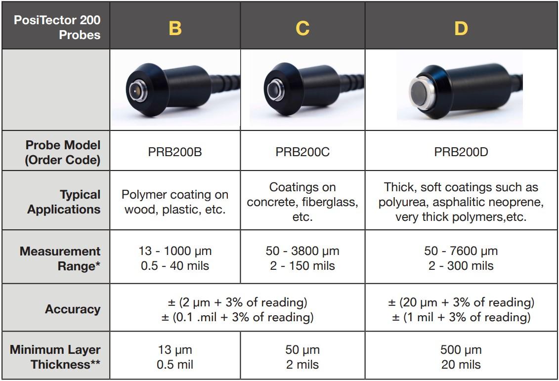 โพรบวัดความหนาผิวเคลือบสำหรับวัสดุที่ไม่เป็นโลหะ เช่น คอนกรีต ไฟเบอร์กลาส และวัสดุอื่น ๆ หากใช้งานร่วมกับเครื่องทดสอบแรงยึดเกาะ รุ่น PT-A PosiTector Advance Gage เครื่องจะสามารถวัดความหนาของผิวได้ถึง 3 ชั้น (Multi-layer system) ยี่ห้อ Defelsko, USA