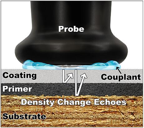 บริเวณรอยต่อระหว่างชั้นเคลือบและวัสดุฐานเป็นจุดที่คลื่นอัลตราโซนิกสะท้อนกลับเนื่องจากความแตกต่างของความหนาแน่น เครื่องมือจะตรวจจับสัญญาณสะท้อนเหล่านี้เพื่อนำมาคำนวณความหนาของชั้นเคลือบได้อย่างแม่นยำ แม้พื้นผิวจะมีความขรุขระหรือไม่สม่ำเสมอ