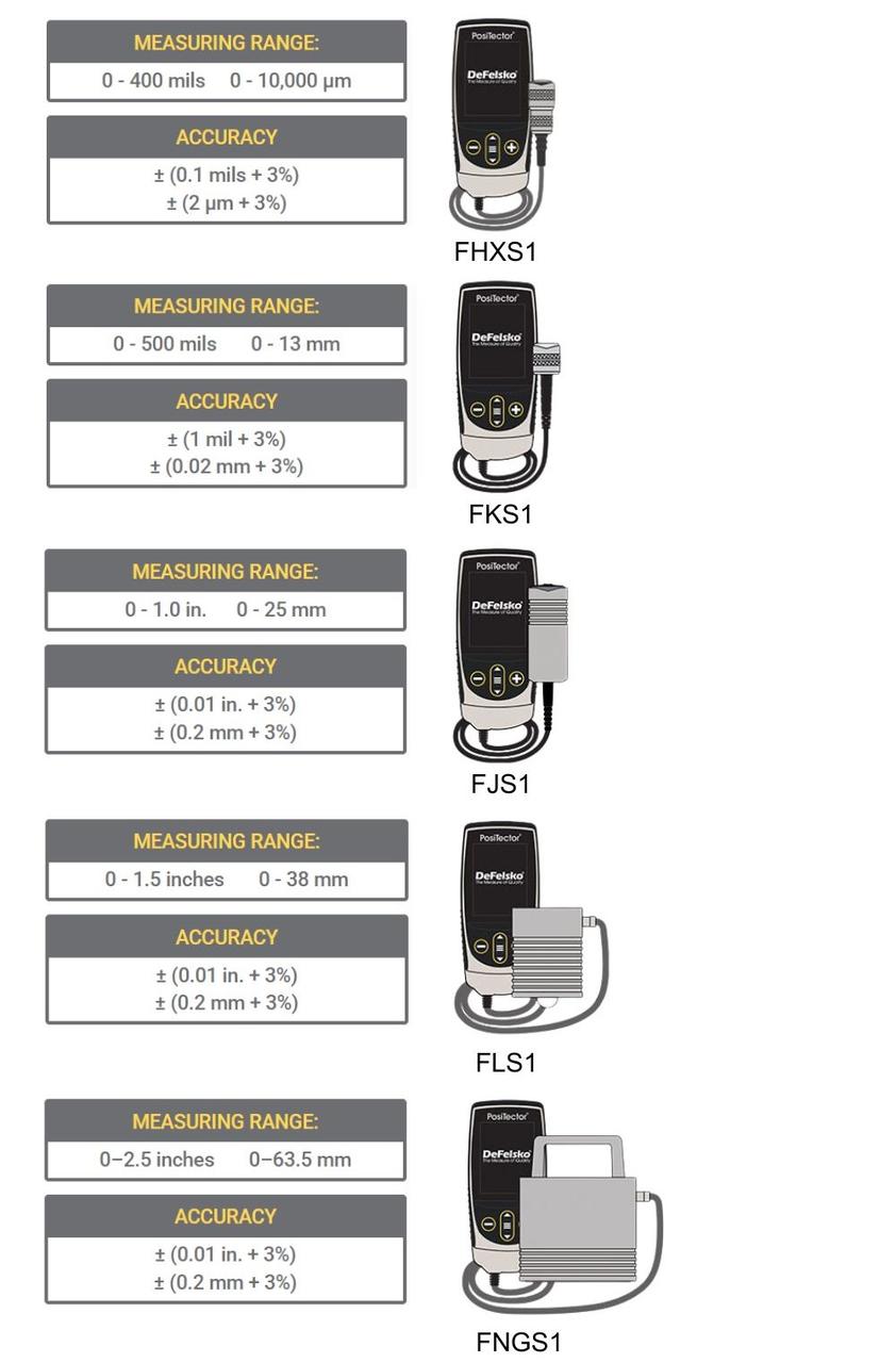 รหัสที่ลงท้ายด้วยเลข 3 หมายถึง Advanced Gage Body พร้อมหัวโพรบ Ferrous หรือ Non-Ferrous เช่น F3, N3