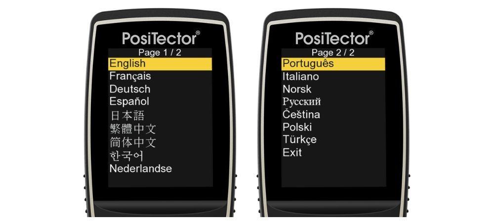 ภาษาที่รองรับบนเครื่อง PosiTector Gage Body