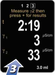 ตัวเครื่องจะเริ่มจับเวลา ระหว่างนั้นให้ใช้ไซริงดูดน้ำออกและฉีดเข้าไปใหม่โดยไม่ต้องดึงไซริงออกจาก PosiPatch ซ้ำประมาณ 4 ครั้ง (DeFelsko แนะนำให้ทำการทดสอบที่ 2 นาทีขึ้นไป) จากนั้นให้ดูดน้ำใน PosiPatch แล้วนำมาฉีดเติมที่ตัวโพรบ รอให้ค่าการวัดนิ่ง จากนั้นกด +