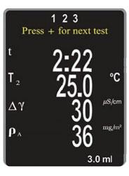 ผลการทดสอบจะแสดงข้อมูล ได้แก่ ระยะเวลาที่ใช้ทดสอบ อุณหภูมิของตัวอย่าง ค่าความนำไฟฟ้า (µS/cm) และความหนาแน่นของเกลือบนพื้นผิว (mg/m² หรือ µg/cm²)