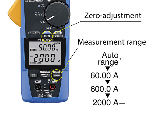 Zero Adjustment เป็นการปรับค่าของเครื่องวัดให้แสดงค่า “ศูนย์ (0)” ก่อนเริ่มวัดจริง เพื่อให้ผลการวัดมีความแม่นยำมากขึ้น บางครั้งอาจมีสัญญาณรบกวนจากสนามแม่เหล็กรอบข้าง หรือค่าคลาดเคลื่อนเล็กน้อยภายในเครื่อง ทำให้หน้าจอแสดงค่าไม่เป็นศูนย์ แม้ว่าจะยังไม่ได้วัดกระแสไฟฟ้า ดังนั้นจึงต้องทำ Zero Adjustment เพื่อปรับค่าเริ่มต้นของเครื่องให้กลับมาเป็นศูนย์ก่อนใช้งาน