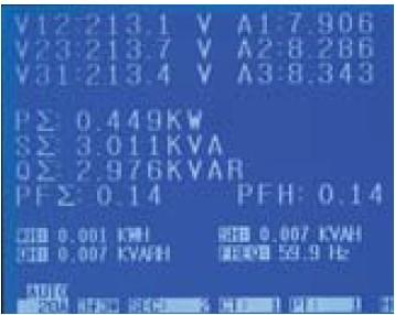 ค่ากำลังไฟฟ้าในหน่วย KW, KVA, KVAR และ PF ทั้งแบบวัดแยกรายเฟสและแบบรวมทั้งระบบ