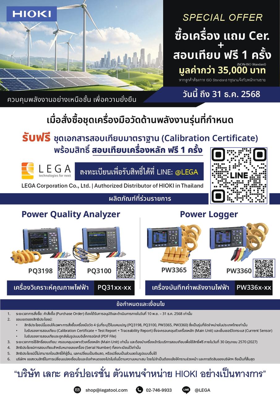 ▲ SPECIAL OFFER ซื้อเครื่อง แถม Cer. + สอบเทียบ ฟรี 1 ครั้ง ตั้งแต่วันนี้ ถึง 31 ธันวาคม 2568