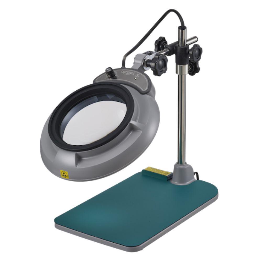 โคมไฟแว่นขยายแบบตั้งโต๊ะ กำลังขยาย 4x สำหรับงานควบคุมไฟฟ้าสถิต (ESD/ESA-SAFE) และใช้แสงที่ปลอดภัยต่อกระบวนการไวแสง ปรับระดับความสว่างได้ตั้งแต่ 100% ถึง 10% สามารถเปลี่ยนเลนส์ได้หลากหลายกำลังขยาย ได้แก่ 2x, 3x, 4x ยี่ห้อ HAA, Japan