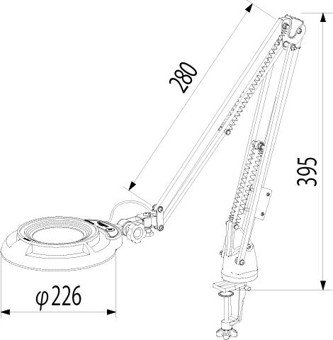เป็นโคมไฟแว่นขยายแบบแขนปรับอิสระ (Compact free arm type) ดีไซน์กะทัดรัด สามารถยึดติดกับโต๊ะทำงานได้อย่างสะดวก