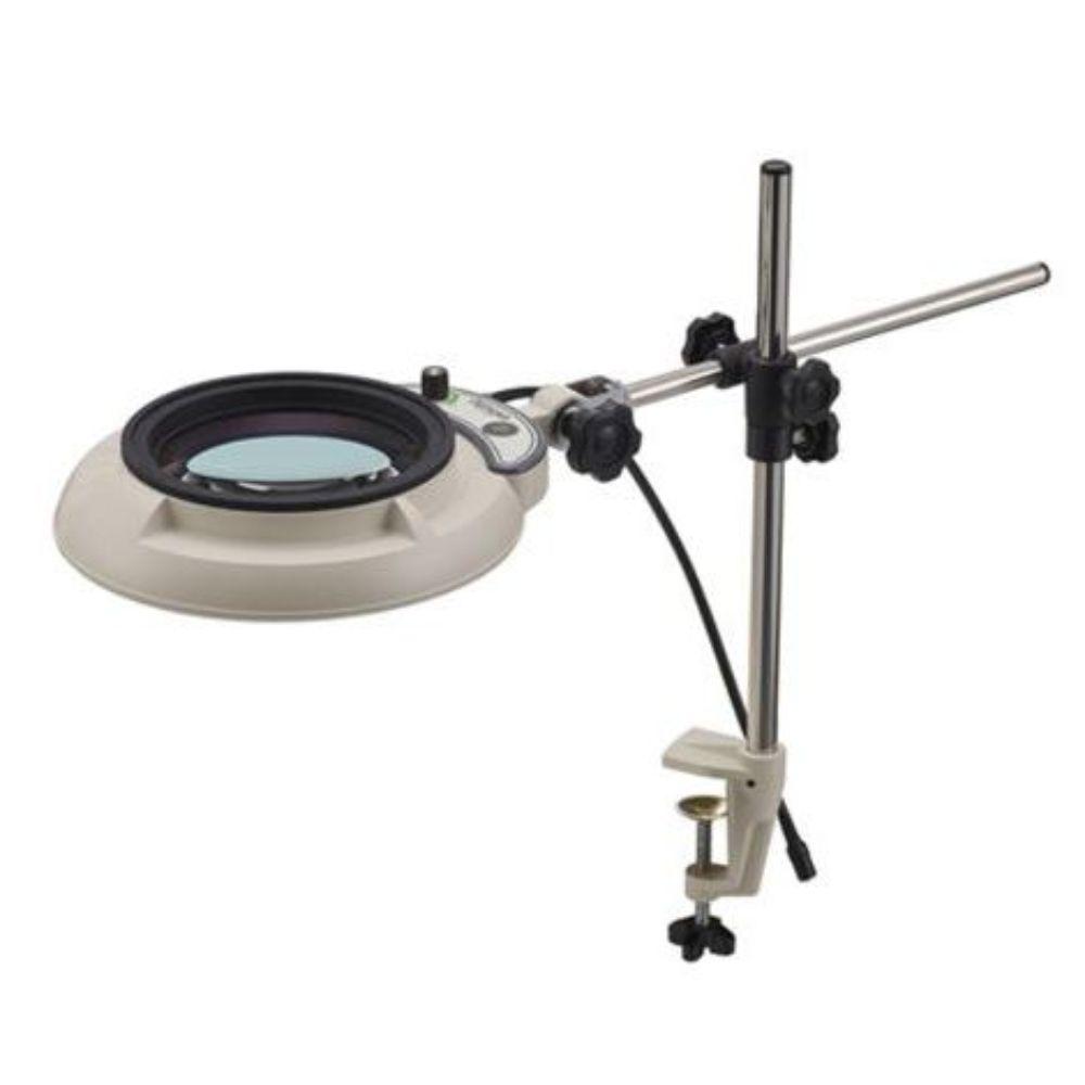 โคมไฟแว่นขยายแบบแขนยาว กำลังขยาย 10x สามารถยึดติดกับโต๊ะทำงานได้ด้วยแคลมป์ มาพร้อมหัวโคมแบบบางดีไซน์ใหม่ ใช้หลอดไฟ High Color Quality White LED ให้แสงสว่างคมชัด สีใกล้เคียงความเป็นจริง โคมไฟสามารถเปลี่ยนเลนส์ได้ตามลักษณะการใช้งาน โดยมีเลนส์กำลังขยายให้เลือกตั้งแต่ 2x, 3x, 4x, 6x, 8x, 10x, 12x, 15x เหมาะสำหรับการส่องดู ตรวจสอบ และค้นหารายละเอียดของชิ้นงานที่ต้องการความละเอียดและความถูกต้องสูง