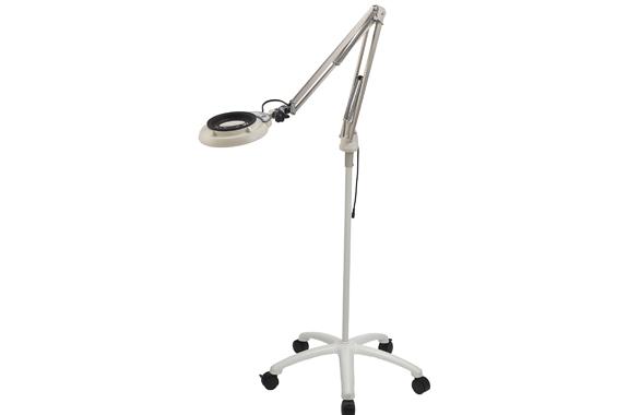 เป็นแว่นขยายพร้อมไฟแบบแขนสวิง ติดตั้งบนขาตั้งแบบมีล้อ สามารถเคลื่อนย้ายและวางใช้งานได้อย่างสะดวกภายในระยะของสายไฟ มาพร้อมหัวโคมแบบบางดีไซน์ใหม่ ใช้หลอดไฟ High Color Quality White LED ให้แสงสว่างคมชัด สีใกล้เคียงความเป็นจริง โดยมีเลนส์กำลังขยายให้เลือกตั้งแต่ 2x, 3x, 4x, 6x, 8x, 10x, 12x, 15x เหมาะสำหรับการส่องดู ตรวจสอบ และค้นหารายละเอียดของชิ้นงานที่ต้องการความละเอียดและความถูกต้องสูง
