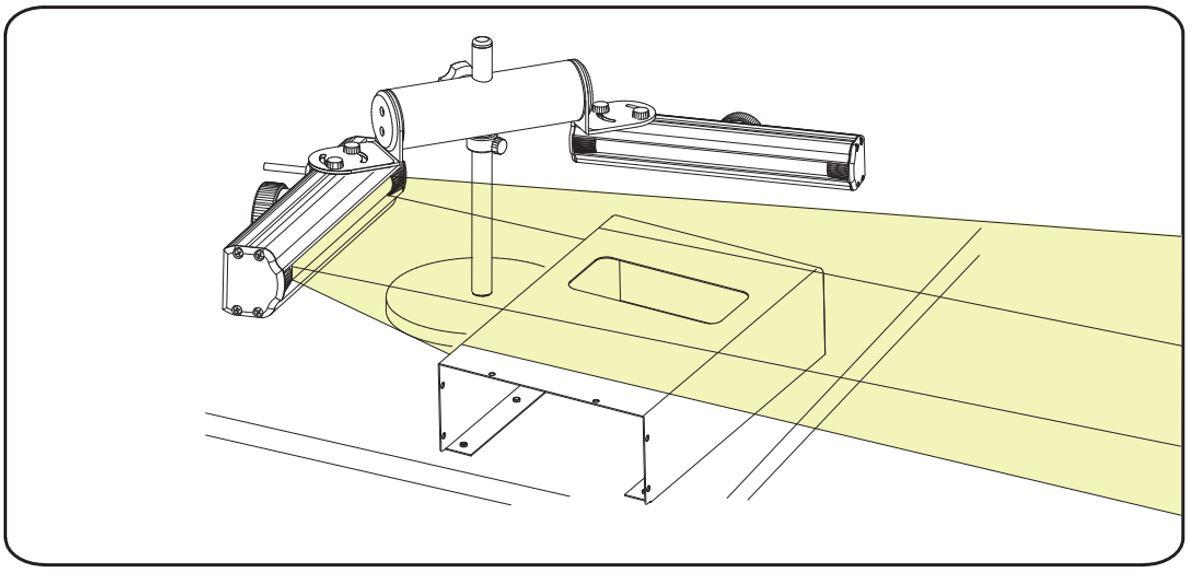 ใช้ขาตั้งปรับเอียงคู่ พร้อมติดหัวไฟ 2 ตัวในมุม 90 องศา เพื่อการส่องที่มีประสิทธิภาพมากขึ้น