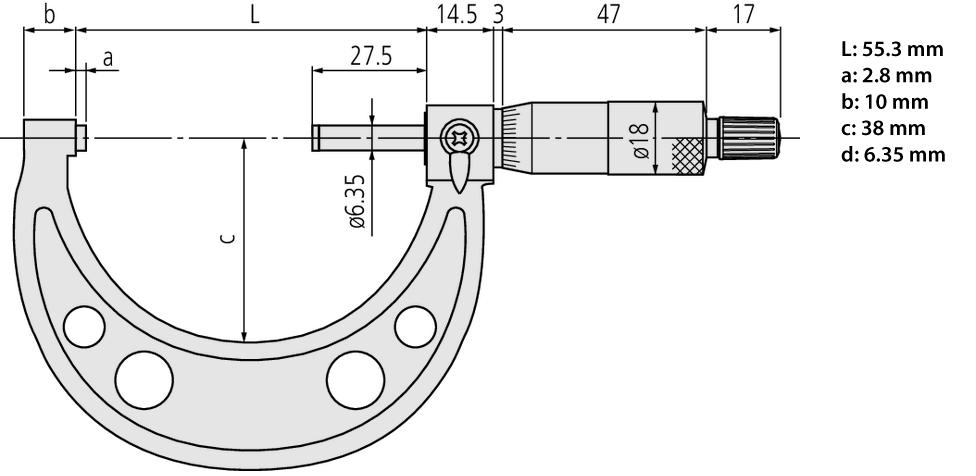 Measuring spindle: | With spindle lock, ø6,35 mm , spindle pitch 0,5 mm |