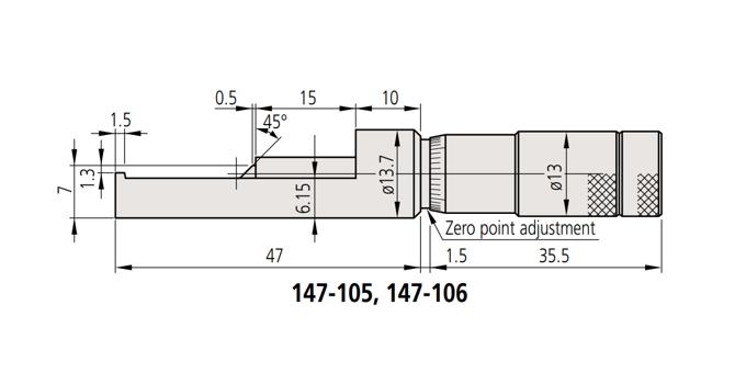 Mitutoyo M-147-105 ไมโครมิเตอร์ Can Seam Micrometer ช่วงการวัด: 0 - 13 mm Graduation: 0.01 mm Accuracy ±3 µm ยี่ห้อ Mitutoyo, Japan