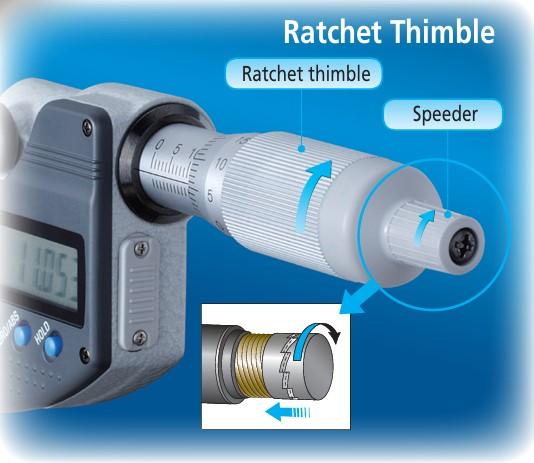 แบบก้านวัดชนิด Ratchet Thimble ได้รับการพัฒนาเพื่อให้ใช้งานได้สะดวกยิ่งขึ้น โดยสามารถใช้มือเพียงข้างเดียว