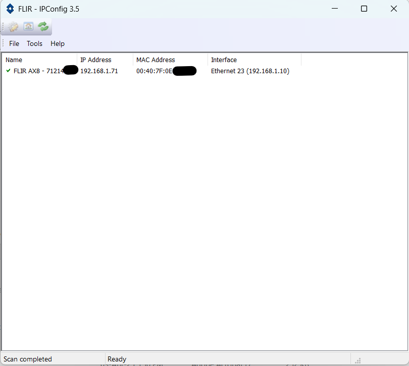 5.คอมพิวเตอร์/แลปทอป เเละซอฟเเวร์ IP CONFIG (https://flir.custhelp.com/app/answers/detail/a_id/1137/related/1) สำหรับช่วยในการค้นหา IP ของกล้อง FLIR ที่เชื่อมต่อในะรบบ ETHERNET