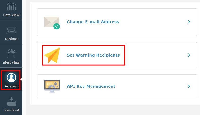 ไปที่เมนู Account > [Set Warning Recipients] เพื่อเปิดหน้าต่างการตั้งค่า