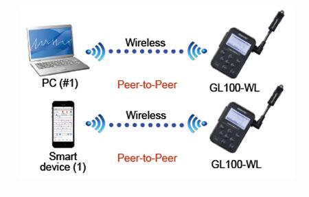 Wireless LAN (in GL100-WL) | Standards: IEEE802.11b, Communication distance: approx. 40 m | |