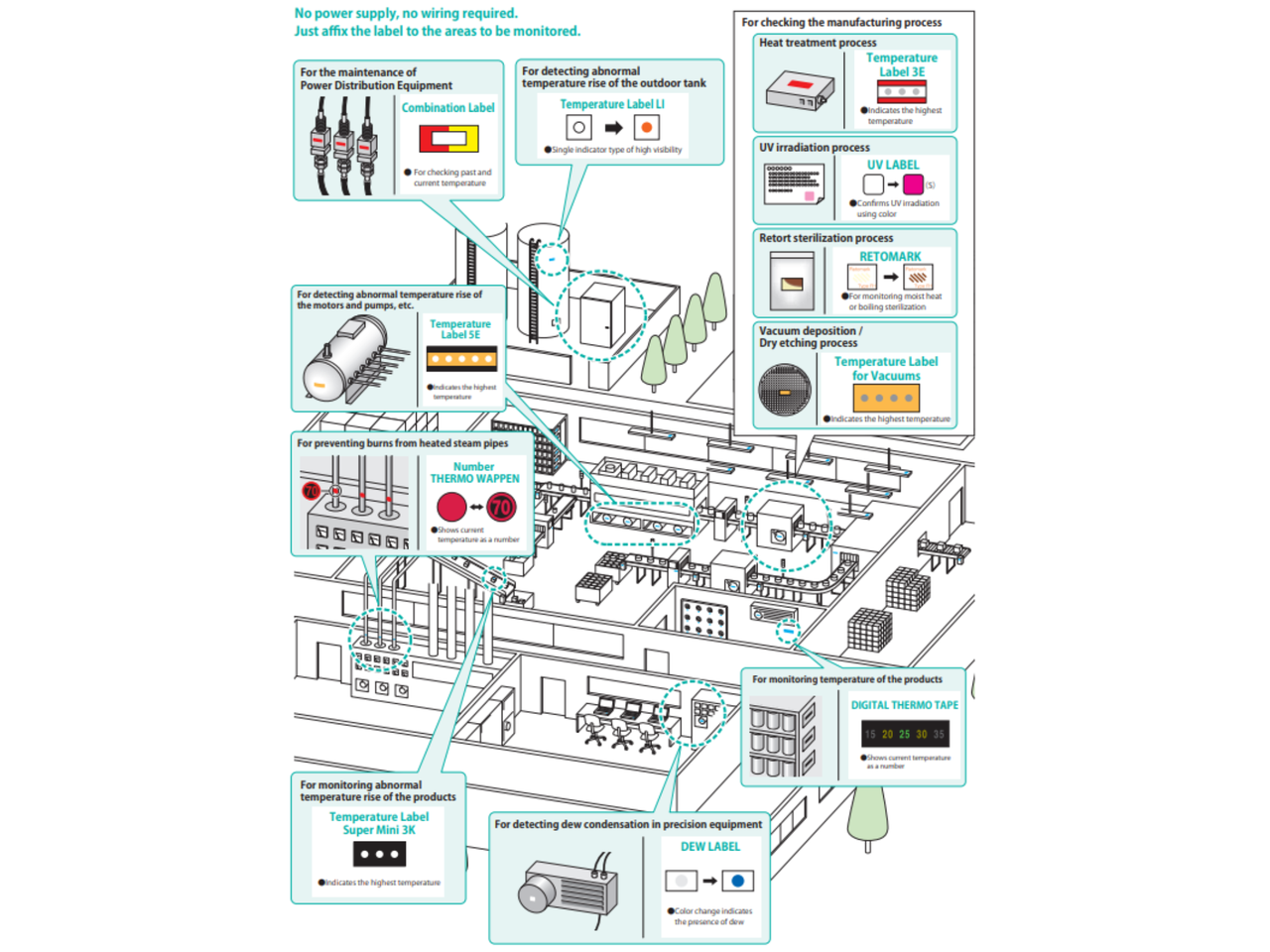 เพื่อให้การตรวจสอบอุณหภูมิเป็นเรื่องง่ายและแม่นยำ ขอแนะนำ Thermo Label® ที่เป็นวัสดุแสดงอุณหภูมิแบบเปลี่ยนสี (Temperature Indicator) ที่ช่วยให้สามารถตรวจสอบอุณหภูมิได้ทันทีด้วยสายตา โดยไม่ต้องใช้เครื่องมือวัดตลอดเวลา