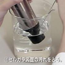 ใส่เซนเซอร์ในแก้วบีกเกอร์ ทำความสะอาดเซนเซอร์ด้วยน้ำสะอาด ใช้แปรงทำความสะอาดเบาๆ